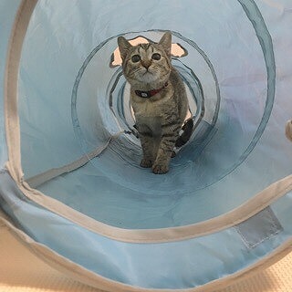 少し透けるので外側からカサカサするとよく反応します。トンネル自体が動いてしまうので何か固定できるようになってたら尚良いかなと思います。