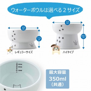 脚付ウォーターボウルは、こちらの「猫柄」のみ、2サイズよりお選びいただけます。