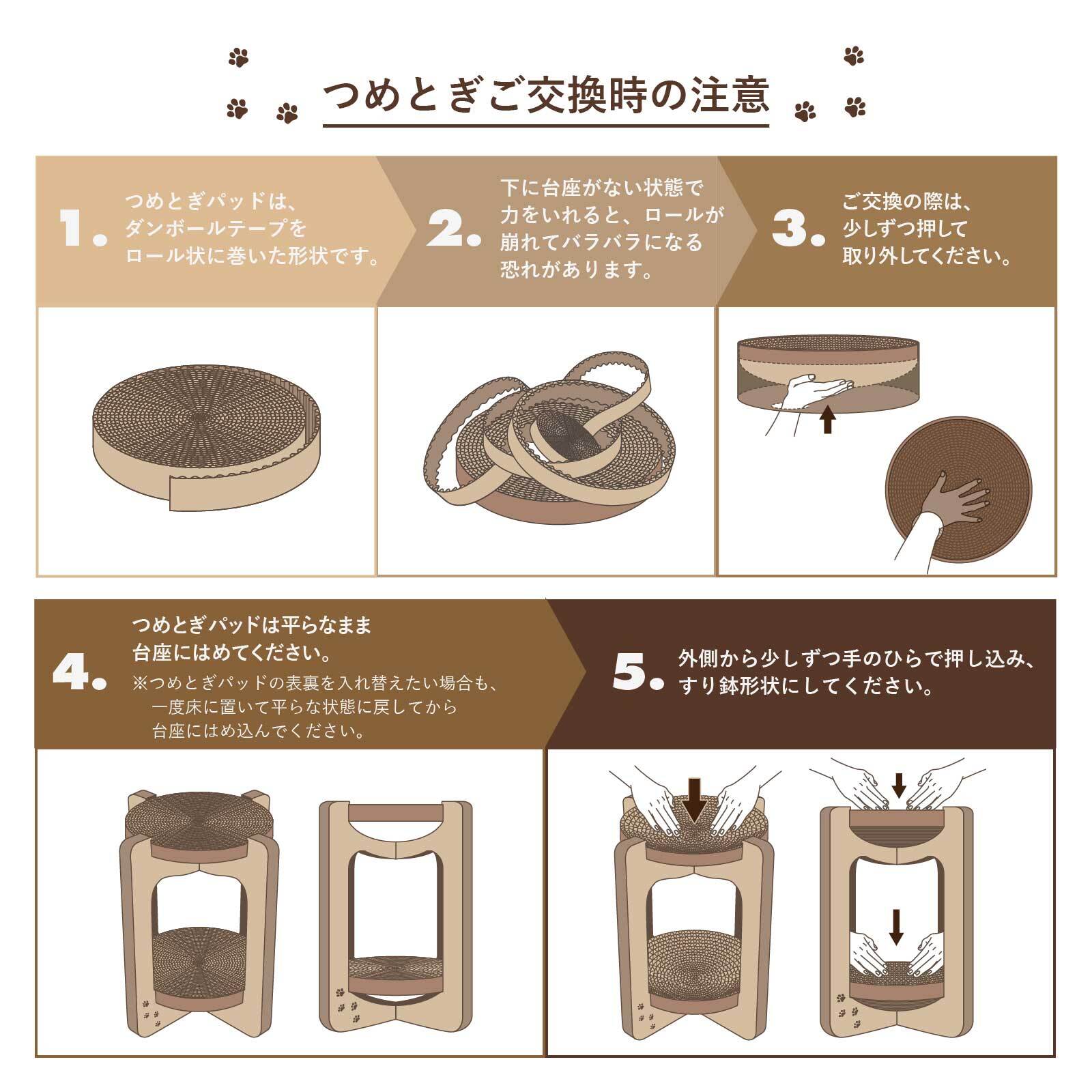 その際、もう片方の手で爪とぎ部分を支えていただけますと、取りやすいかと存じます。 -
