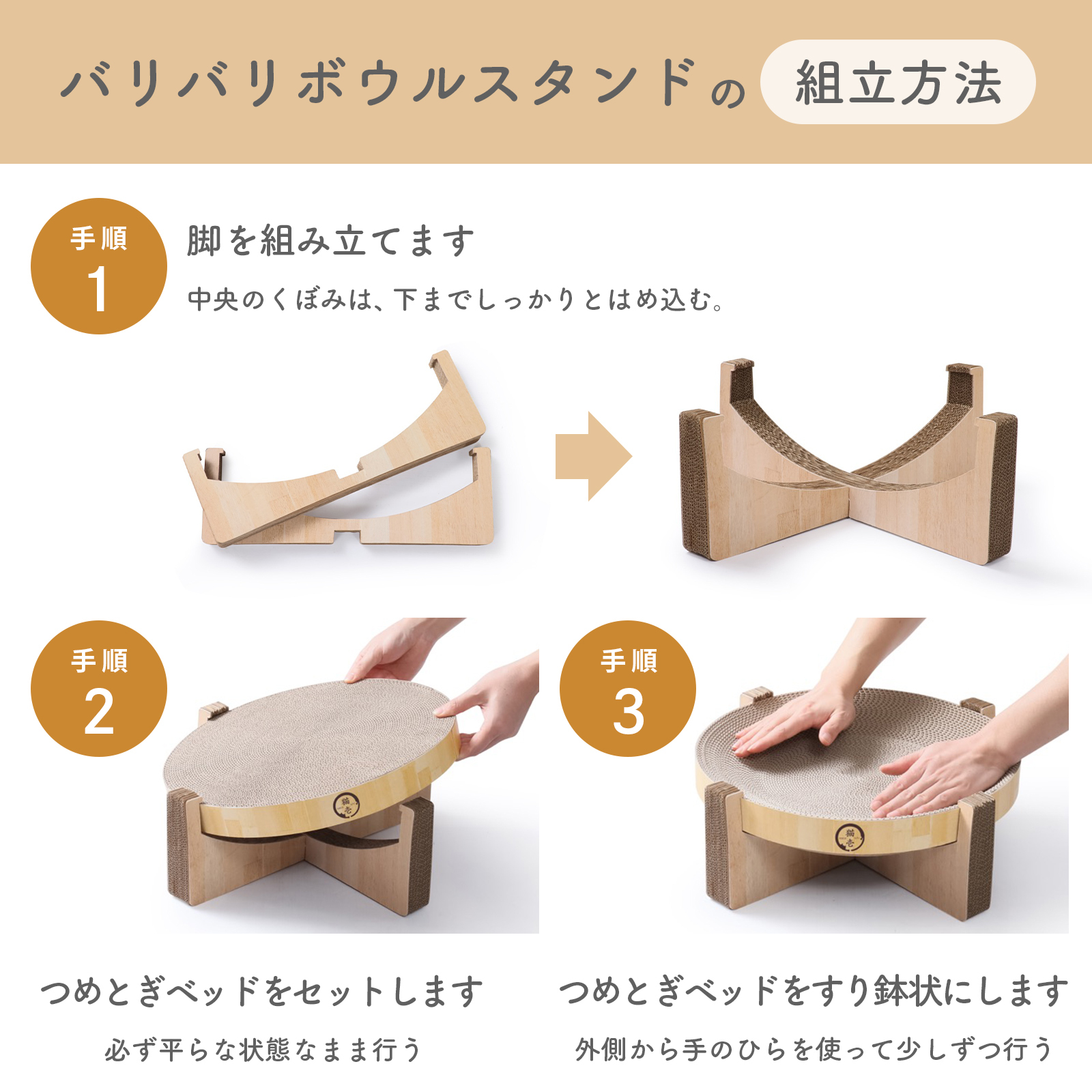 その際、もう片方の手で爪とぎ部分を支えていただけますと、取りやすいかと存じます。 -