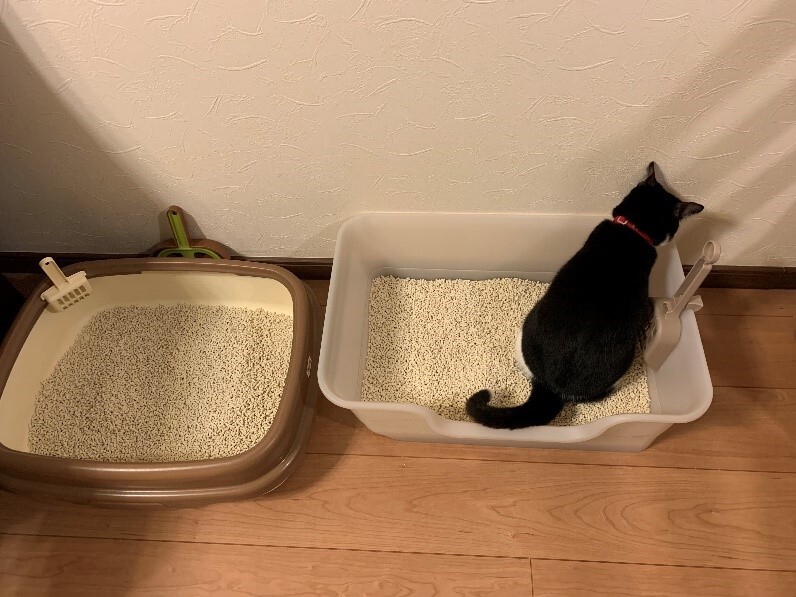 そうするとトイレの場所に何らかの問題がある場合(例えば苦手な同居の猫がいた、苦手なお子さまがいた、人通りが多かったなど)、別場所のトイレ設置箇所に行けるので、「あそこに行けなかったから、おもらししたの」という猫の訴えがありそうな問題もなくなります。