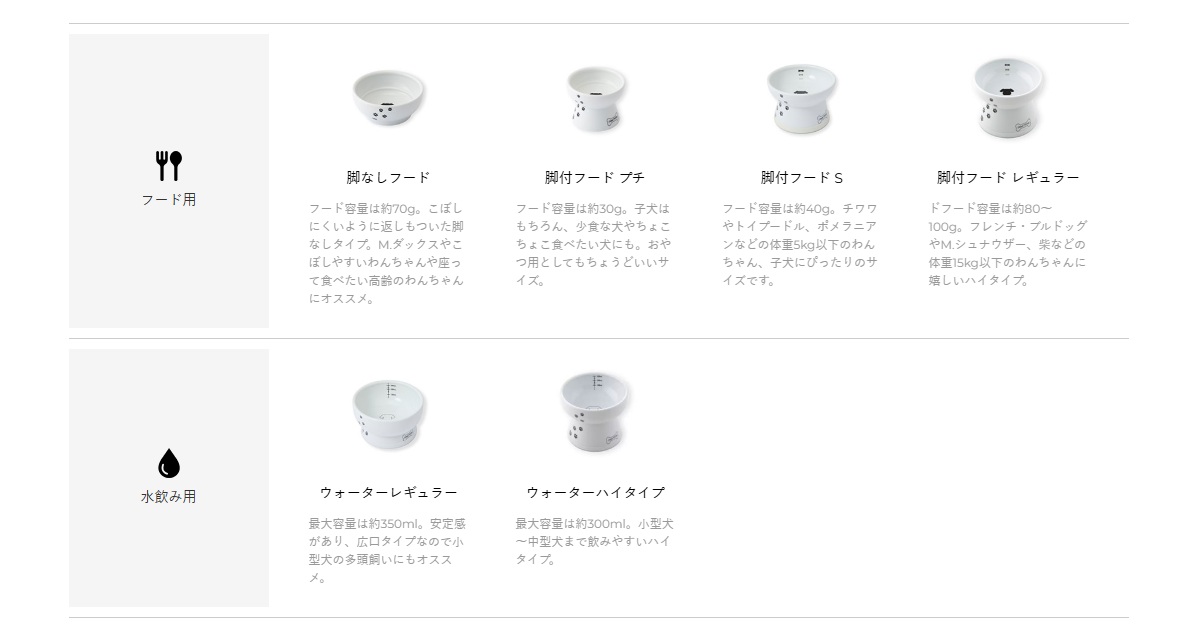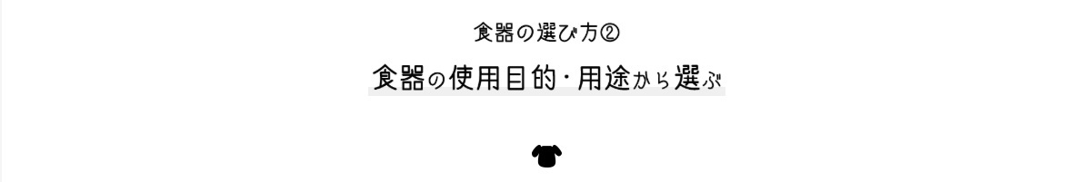 「目的や用途で食器を選ぶ」という方法も、食器の絞り込みには有効です。猫壱の食器は、フード用と水飲み用にわかれています。以下の表を見ながら、用途に合った食器を探しましょう。