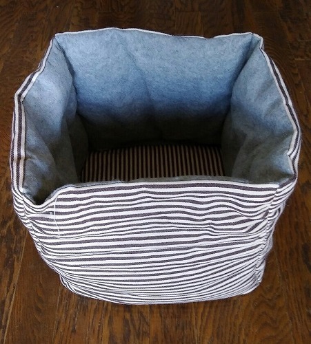 100均のクッション5枚、針と糸と、ほんの少しの手間があればフカフカベッドが出来上がります。