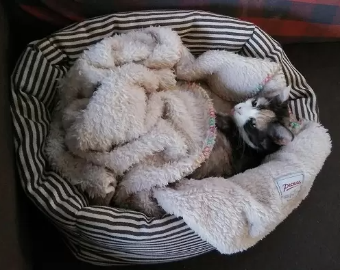 6、小柄なチノちゃんは更に毛布を敷いてフカフカにしてあげてます