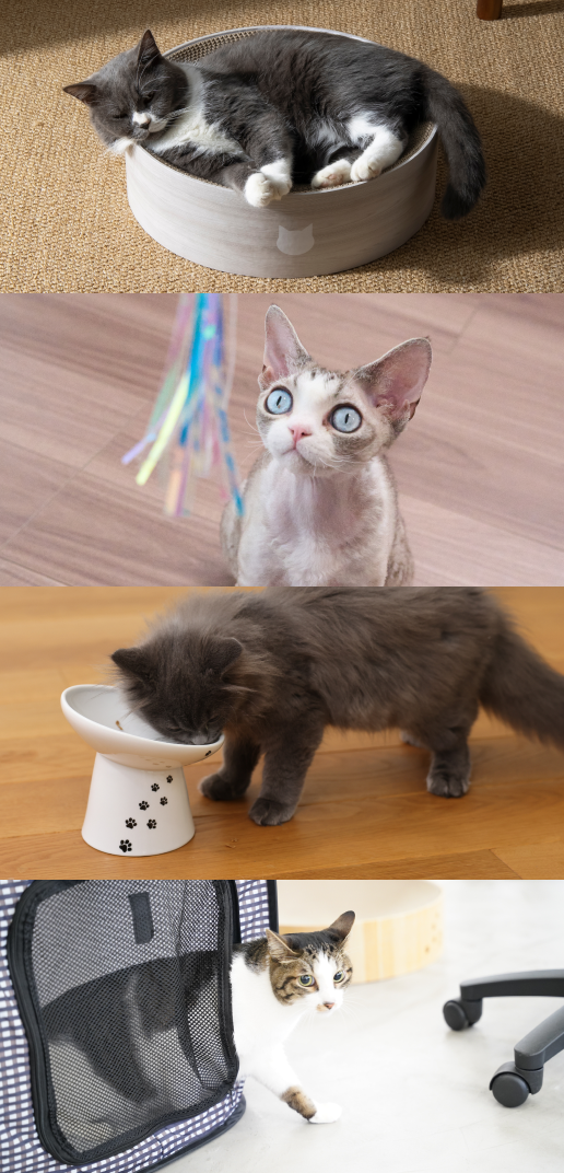 それは、生活空間に馴染む形状、色合いや、猫の暮らしにフィットするデザインです。