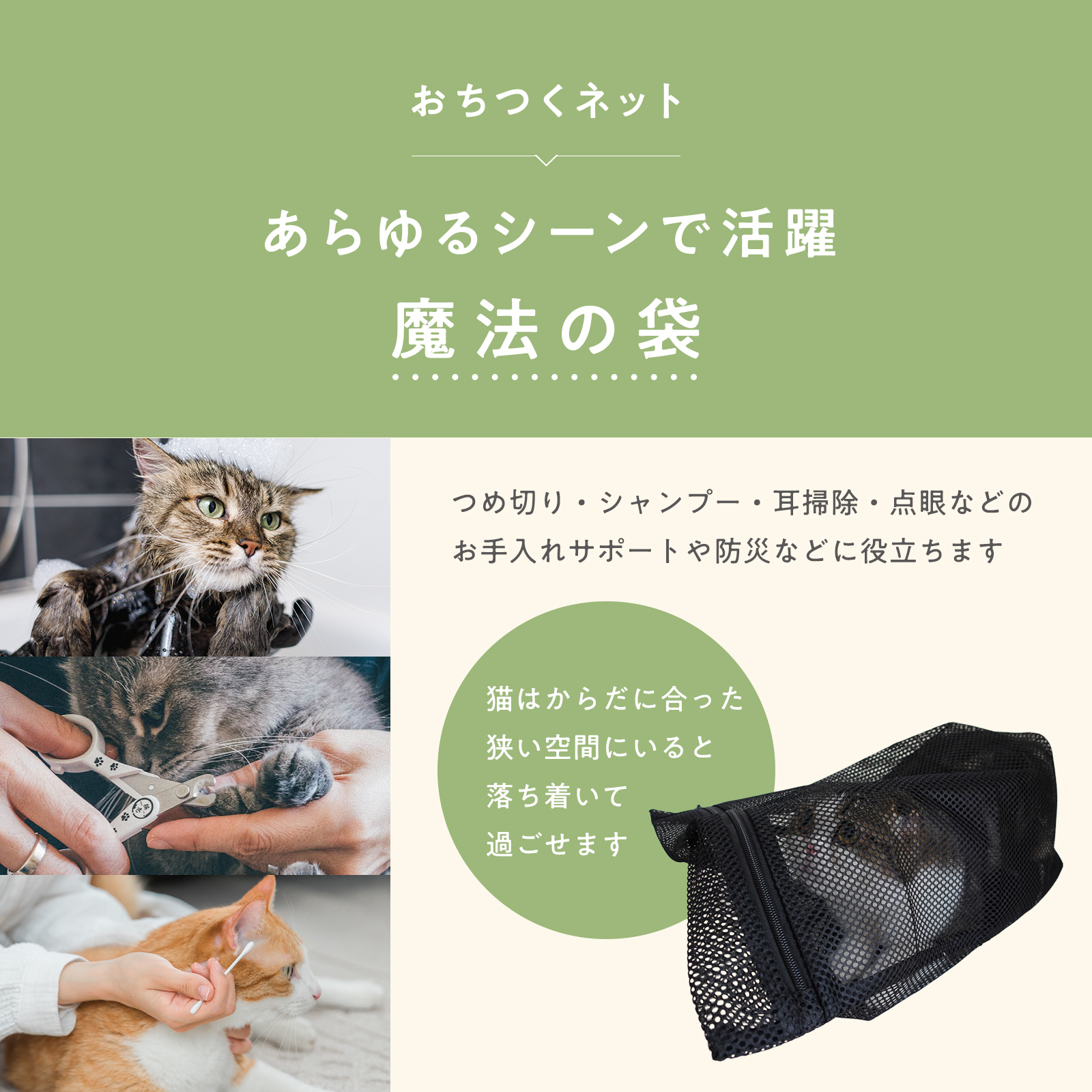 猫が落ち着かず苦手なシーン:つめ切り・シャンプー・耳掃除・点眼などのサポートに役立ちます。