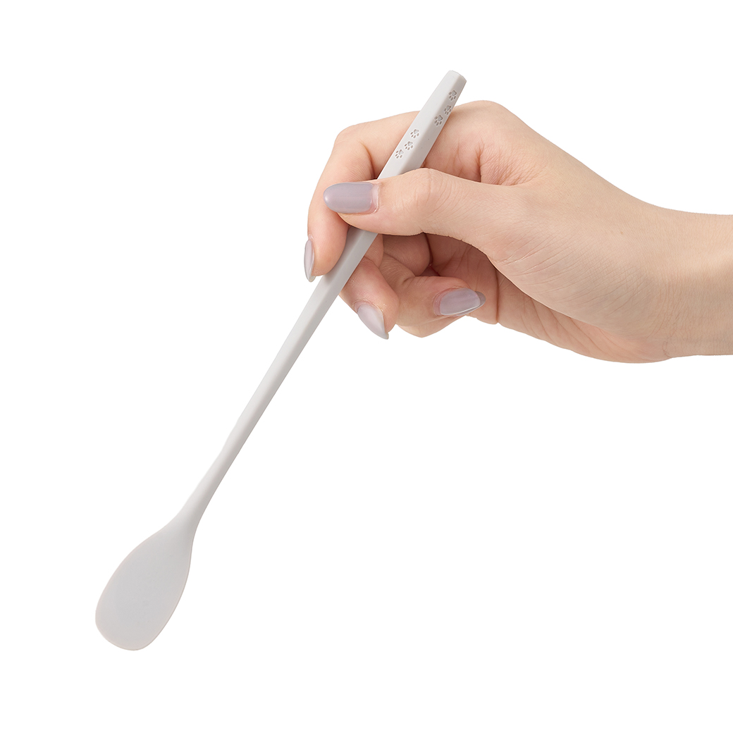 鉄製の芯をシリコンでコーティングした一体成型。継ぎ目がないので汚れが溜まりにくく、食洗機や煮沸消毒もOK。適度な重みとしなりで、フードをほぐすのも簡単です。