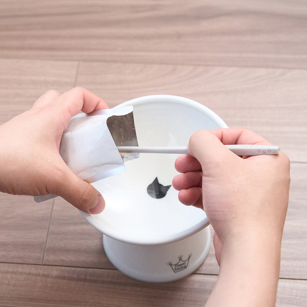 長さ約20cmのロング柄で、パウチの奥までスプーンが届き、飼い主様の手がフードで汚れるのを防ぎます。