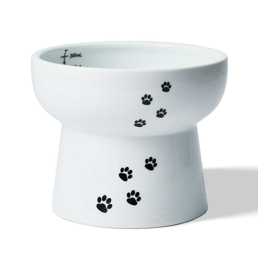 ボウルには透明感のある白磁を生かしたシンプルな犬のシルエット。脚部分には犬の足跡をあしらいました。