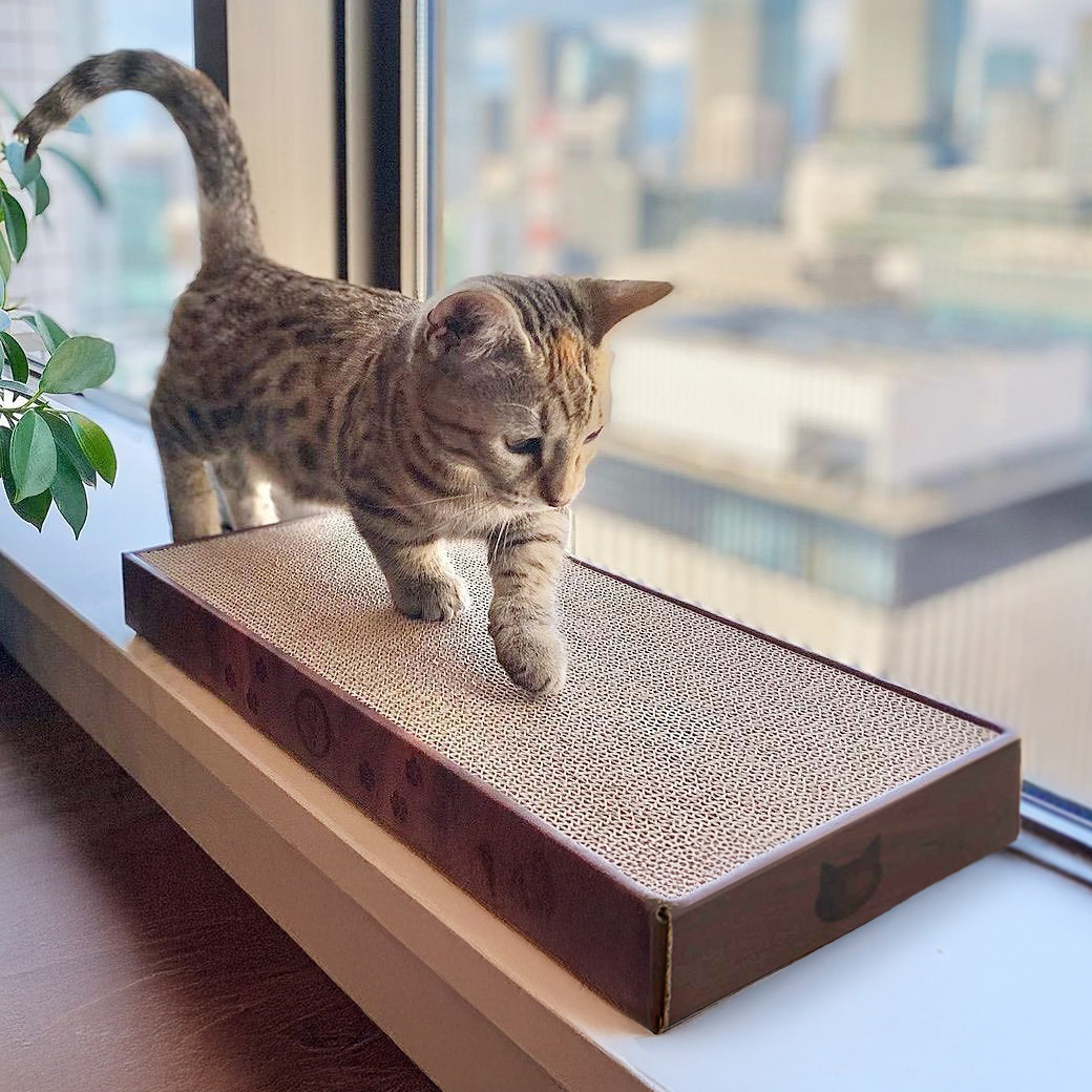 【ケージにも入る絶妙サイズ】 幅20cm×奥行40cmの設計で、一般的なケージの中にもスッキリ収まります。子猫の初めての爪とぎや、ケージ内でのリラックススペースとしても最適です。