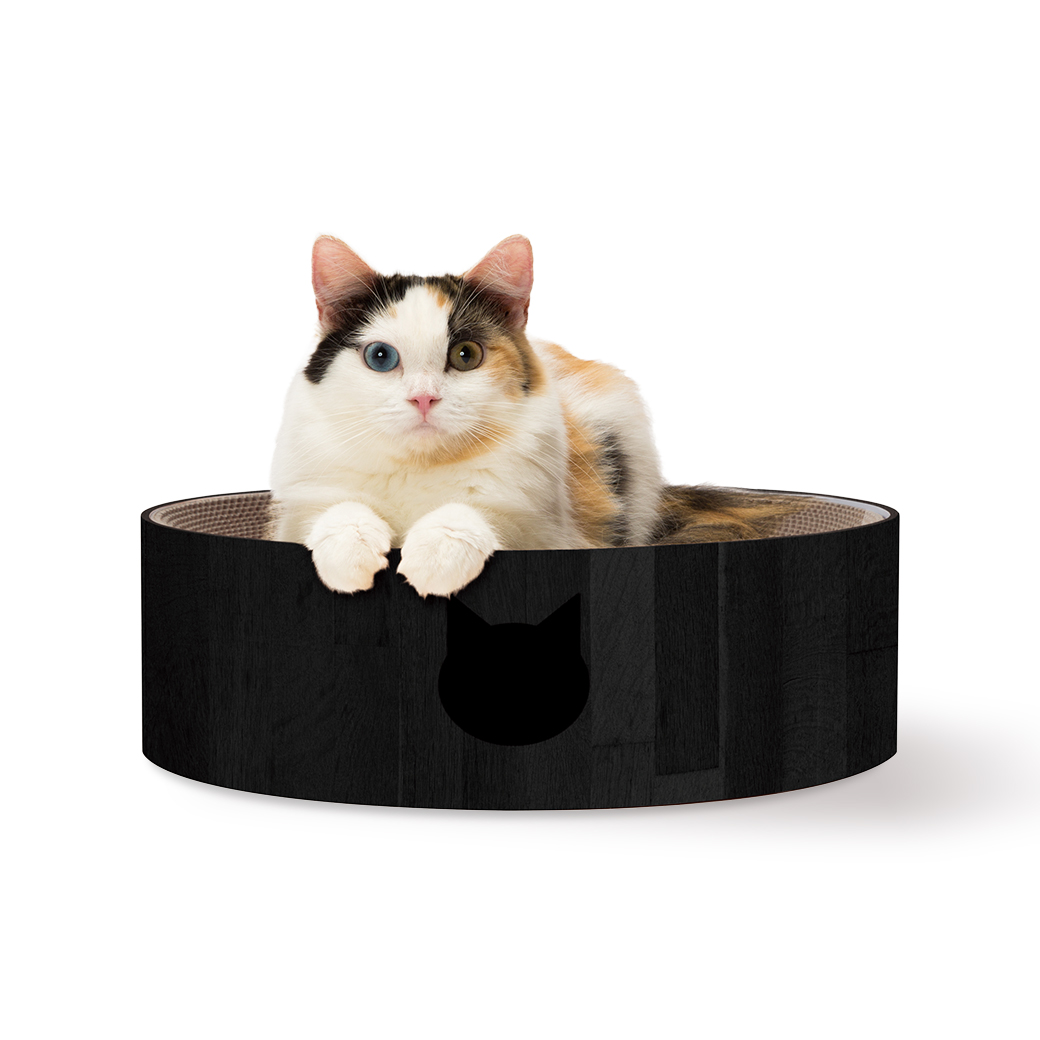 すり鉢状のベッドが猫の丸い体に沿うようにフィット。一度入ると出られなくなる猫続出の快適さです。