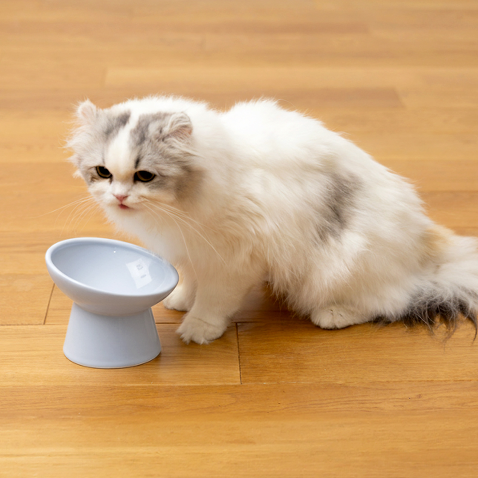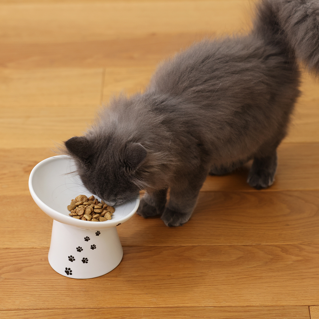 猫は食道が比較的まっすぐな動物です。低い位置での食事は逆流を招きやすいもの。頭と喉を下げずに自然な体勢で食事ができるため、嚥下を助け、一気食いによる嘔吐や吐き戻しの負担を軽減します。