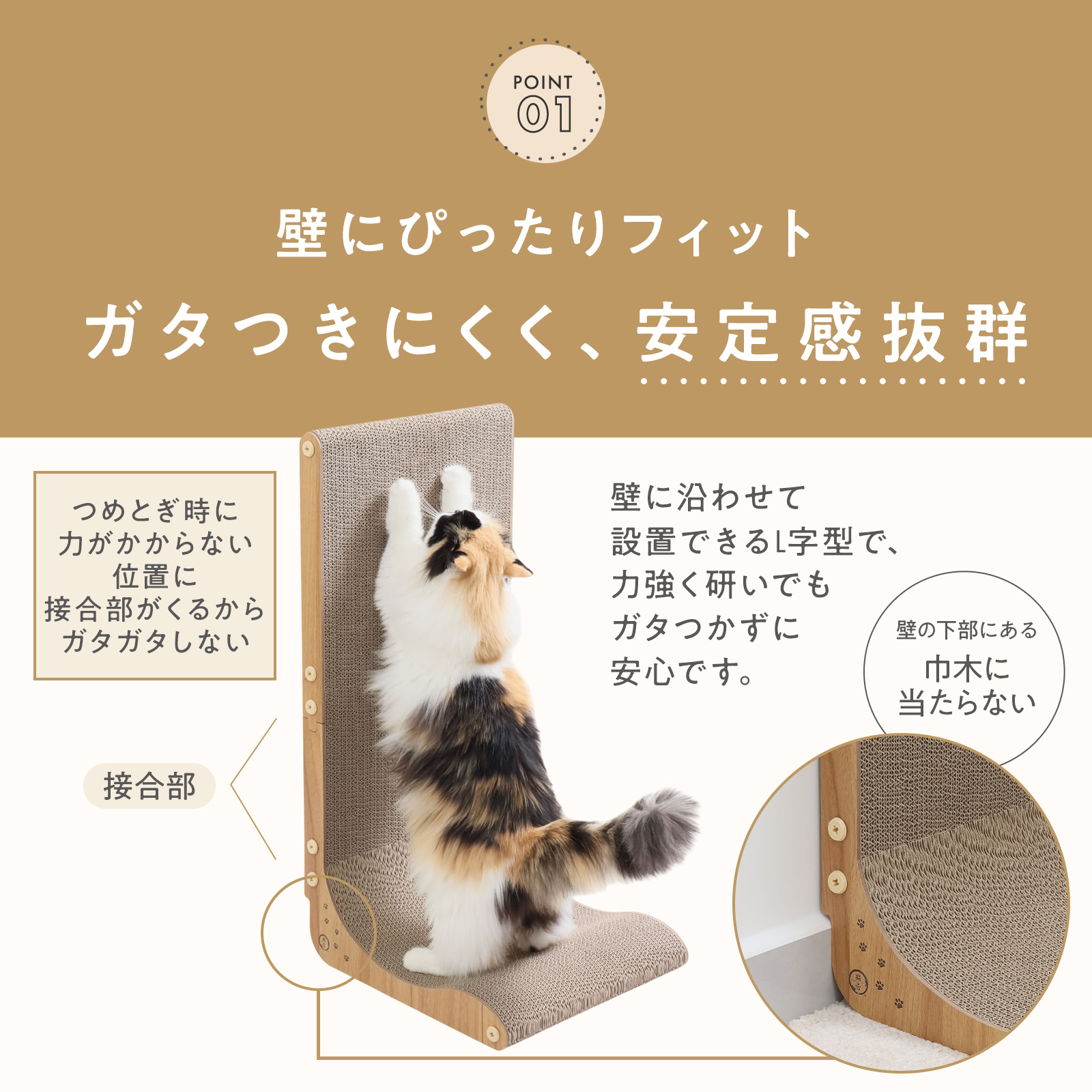ダンボールの原料は高品質なニュージーランド産の原パルプを一部使用し、貼り合わせには植物由来の糊を使用しています。猫がとぎやすく通気性も良い、爪とぎに最適な品質にこだわりました。