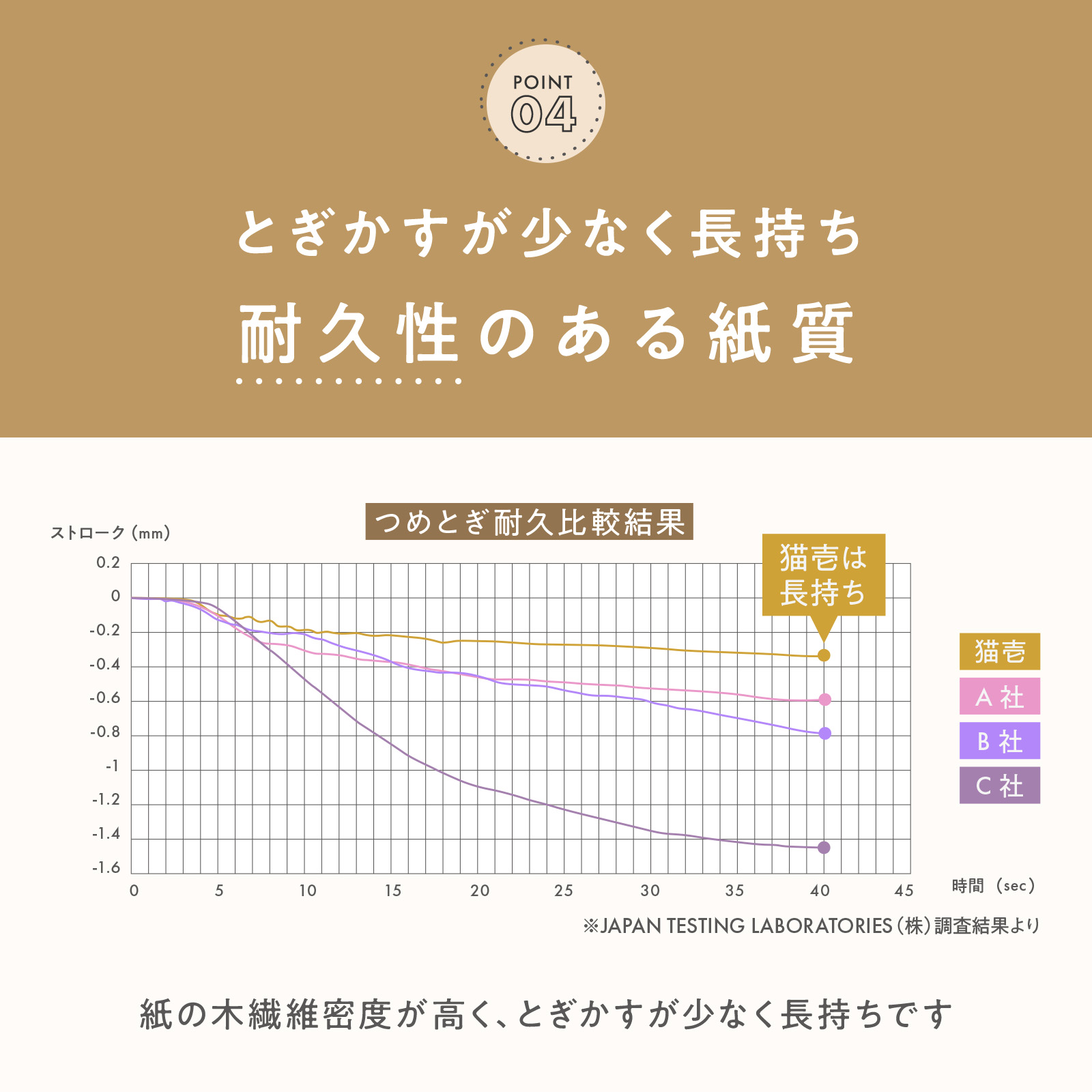 密度や素材などの最適なバランスを追求した、研ぎかすが出づらい独自設計です。