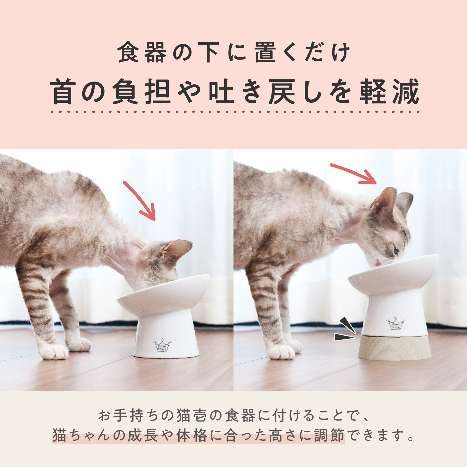 食器の下にセットした後に「必ずスタンド裏面の猫壱マークの周りを何度かぎゅっと押しこんで」ご使用ください。
