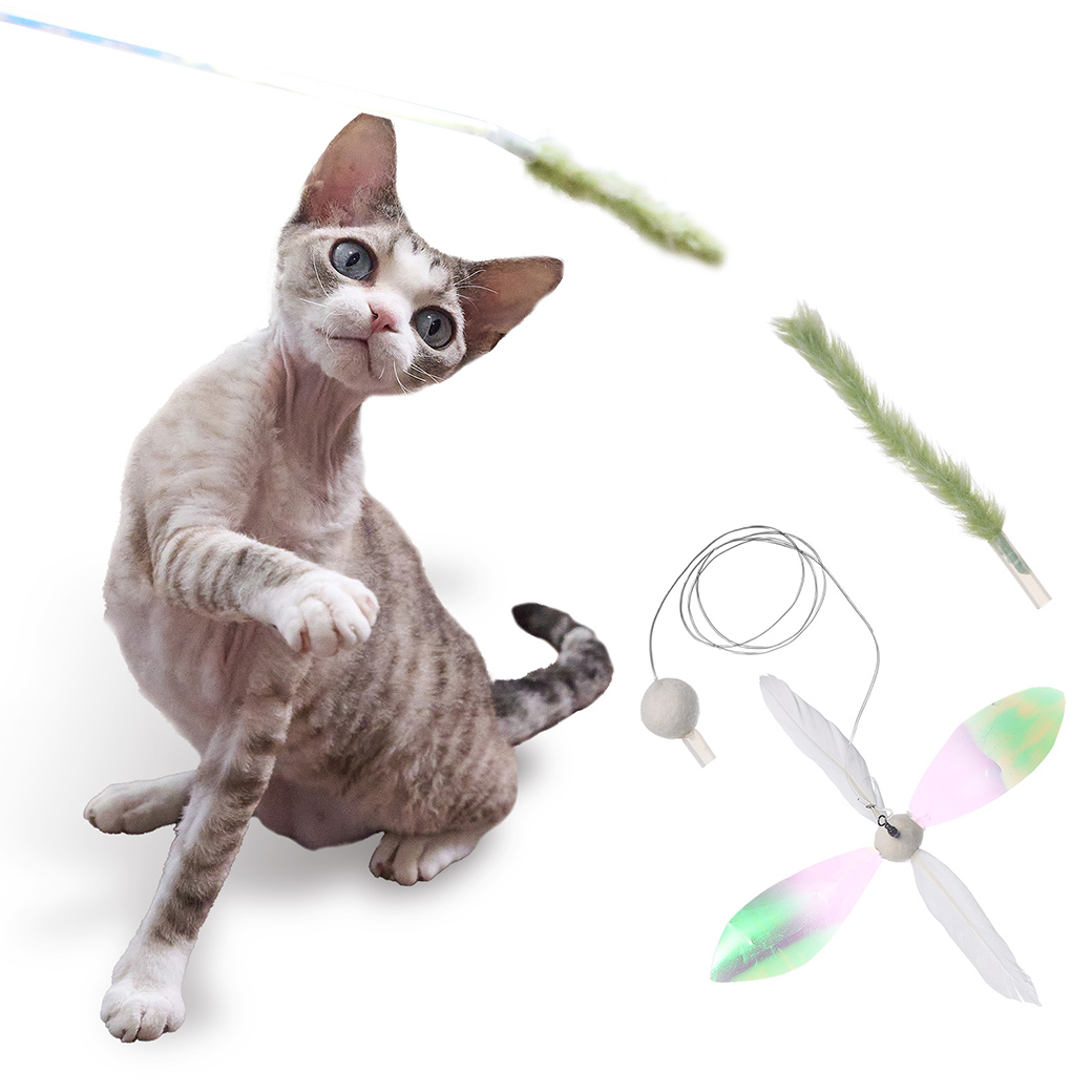 もう、ただの猫じゃらしには戻れない。 「動き」の異なる2つのヘッドで狩猟本能を刺激!交換式で経済的なスマート・トイ
