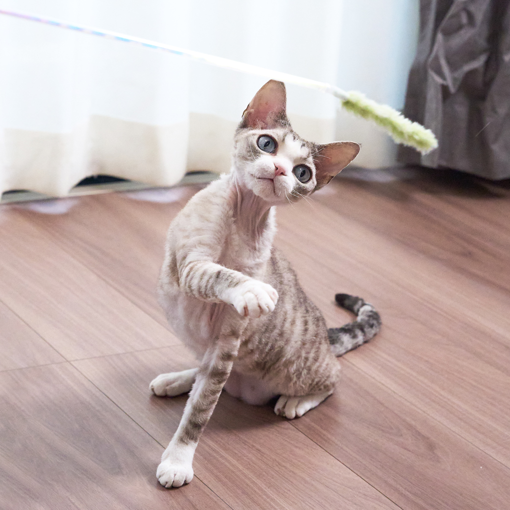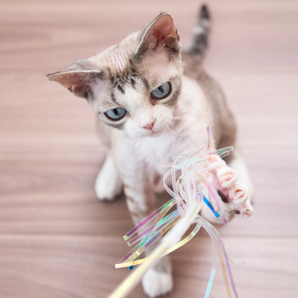 ショートタイプ: 小刻みに動かして、獲物を狙う「待ち伏せ」や「飛びかかり」遊びに。 その日の気分に合わせて付け替えることで、マンネリ化を防ぎ長く遊べます。