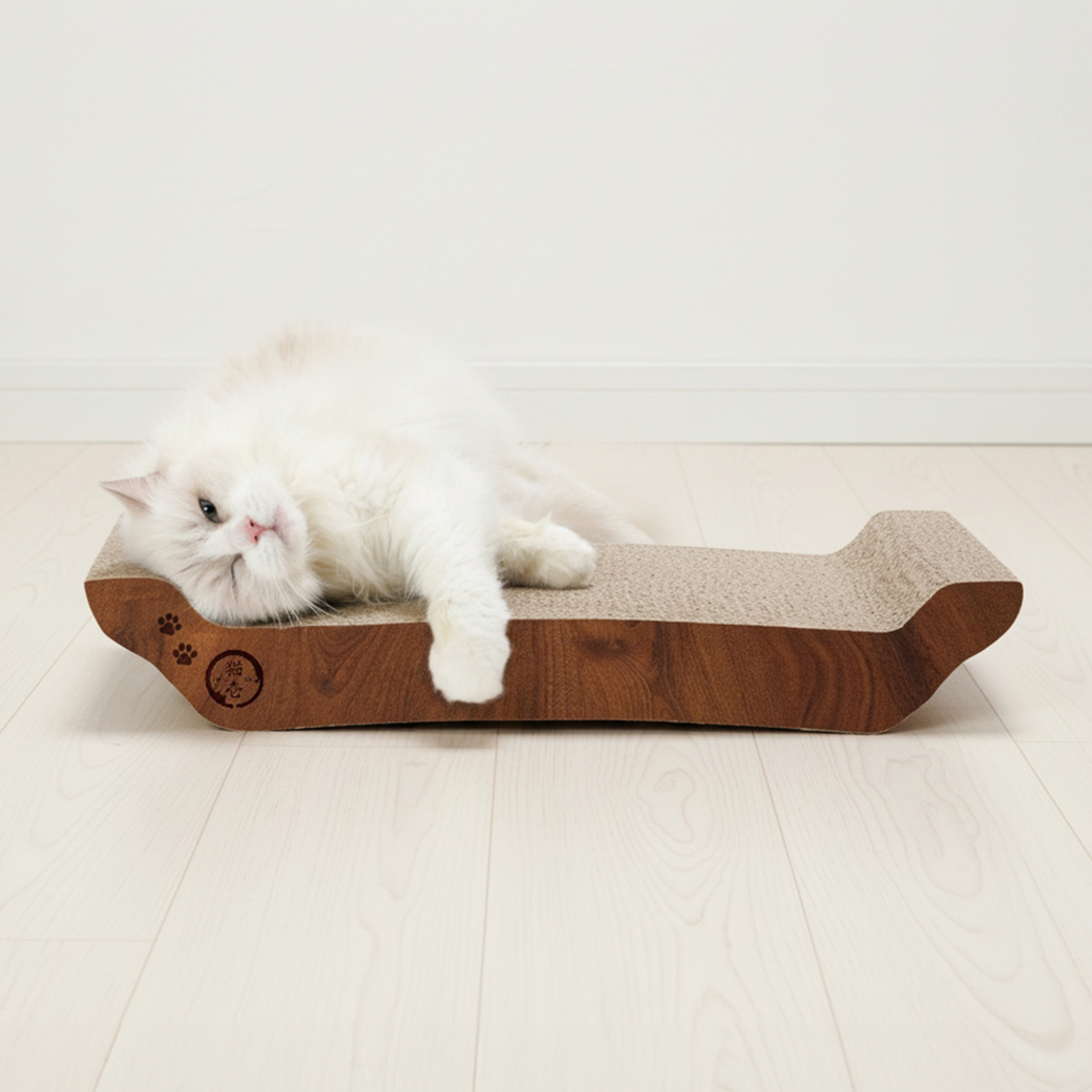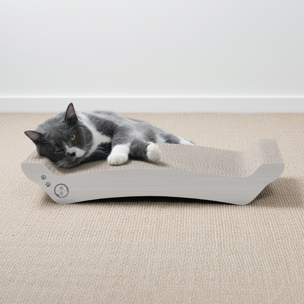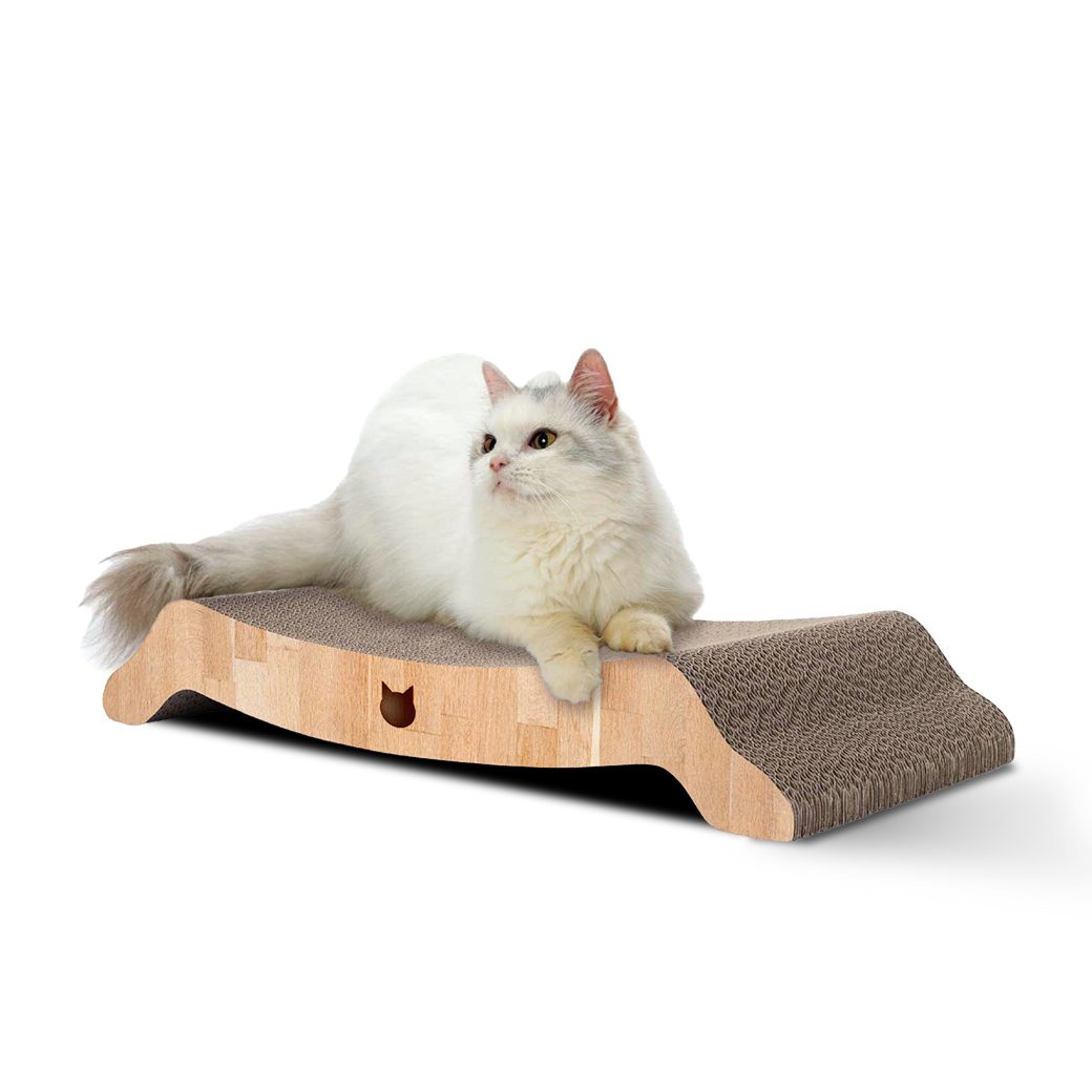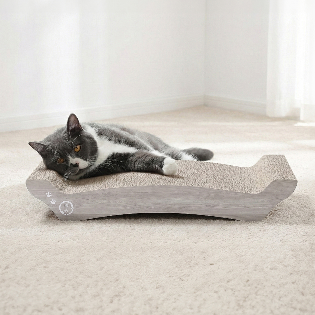 絶妙なカーブ形状が猫のやわらかい体にフィット。つめとぎとしてはもちろん、リラックスできるベッドとしても大活躍します。
