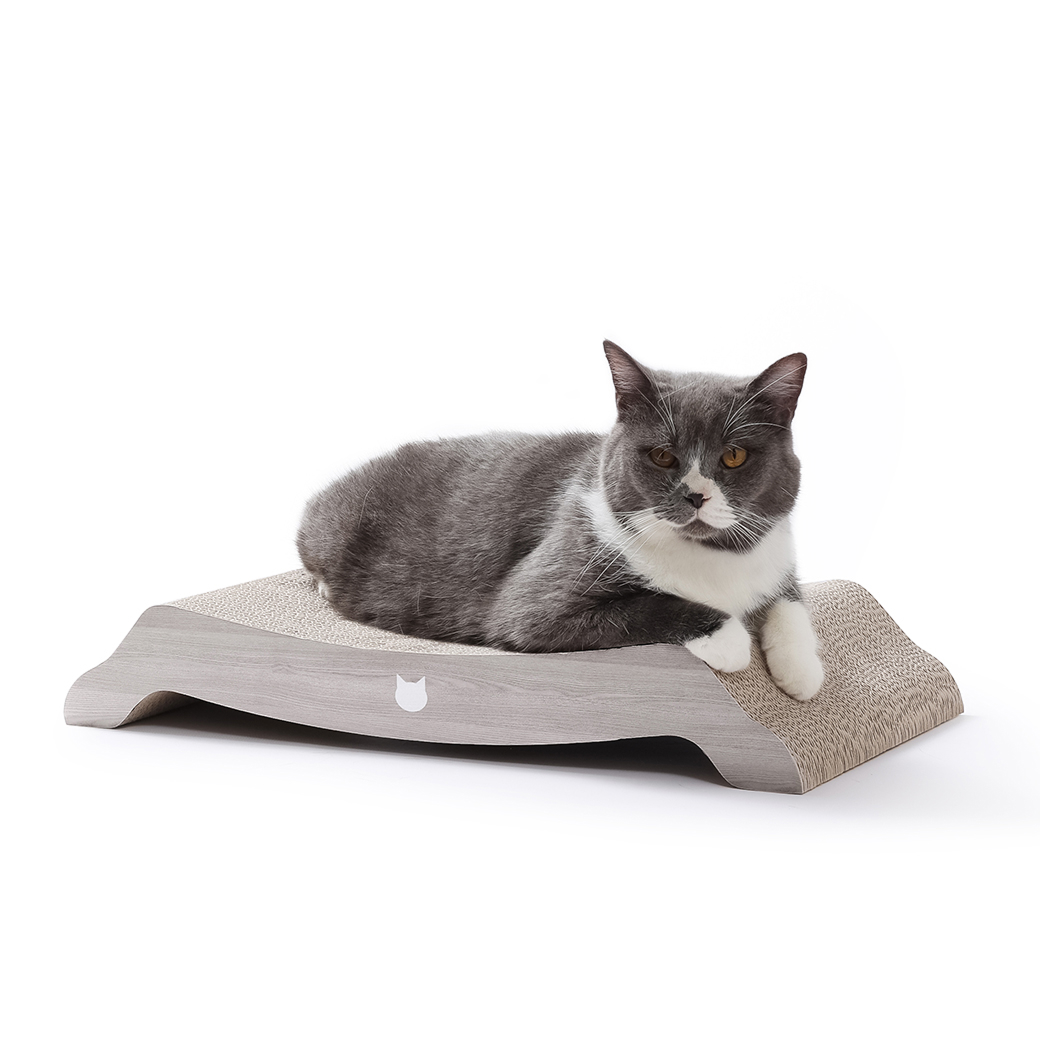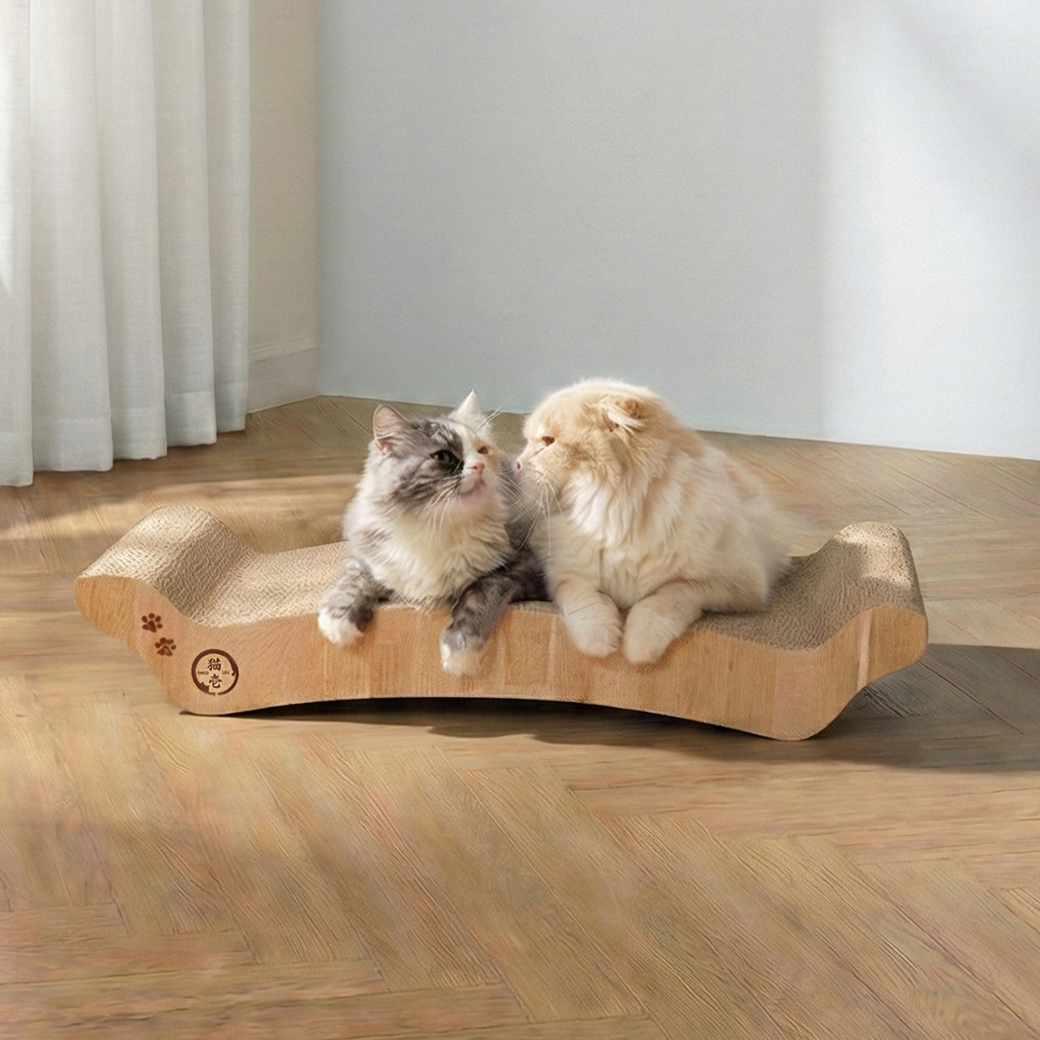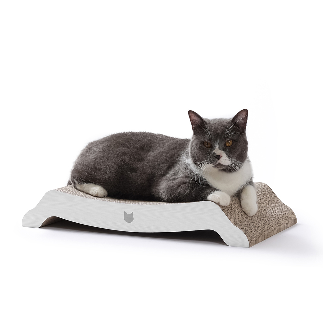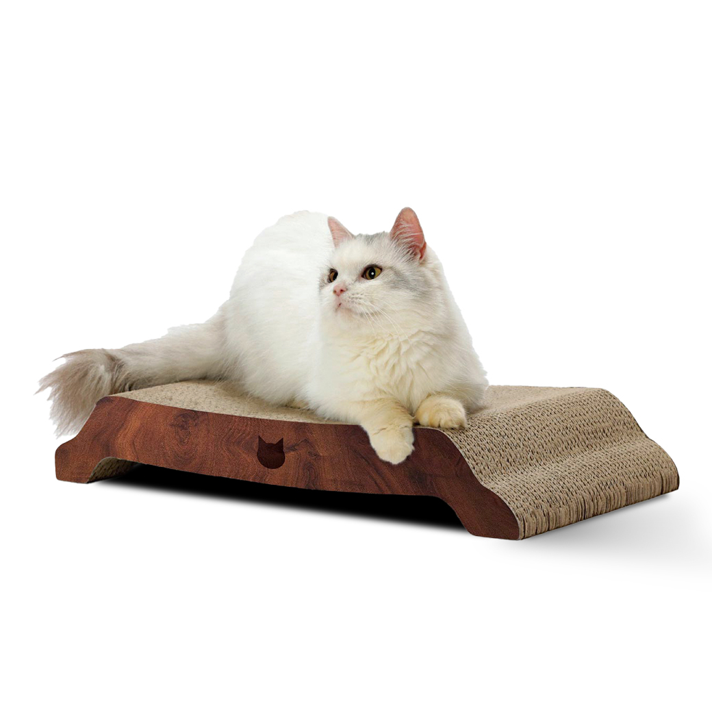 絶妙なカーブ形状が猫のやわらかい体にフィット。つめとぎとしてはもちろん、リラックスできるベッドとしても大活躍します。