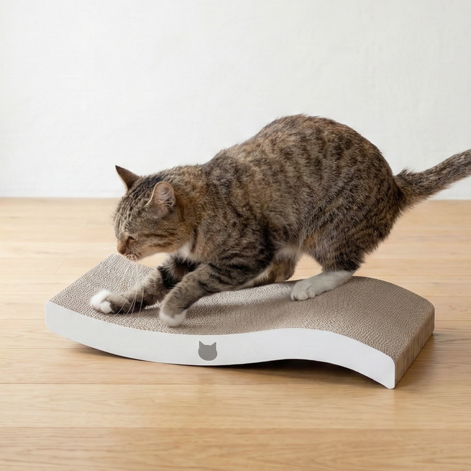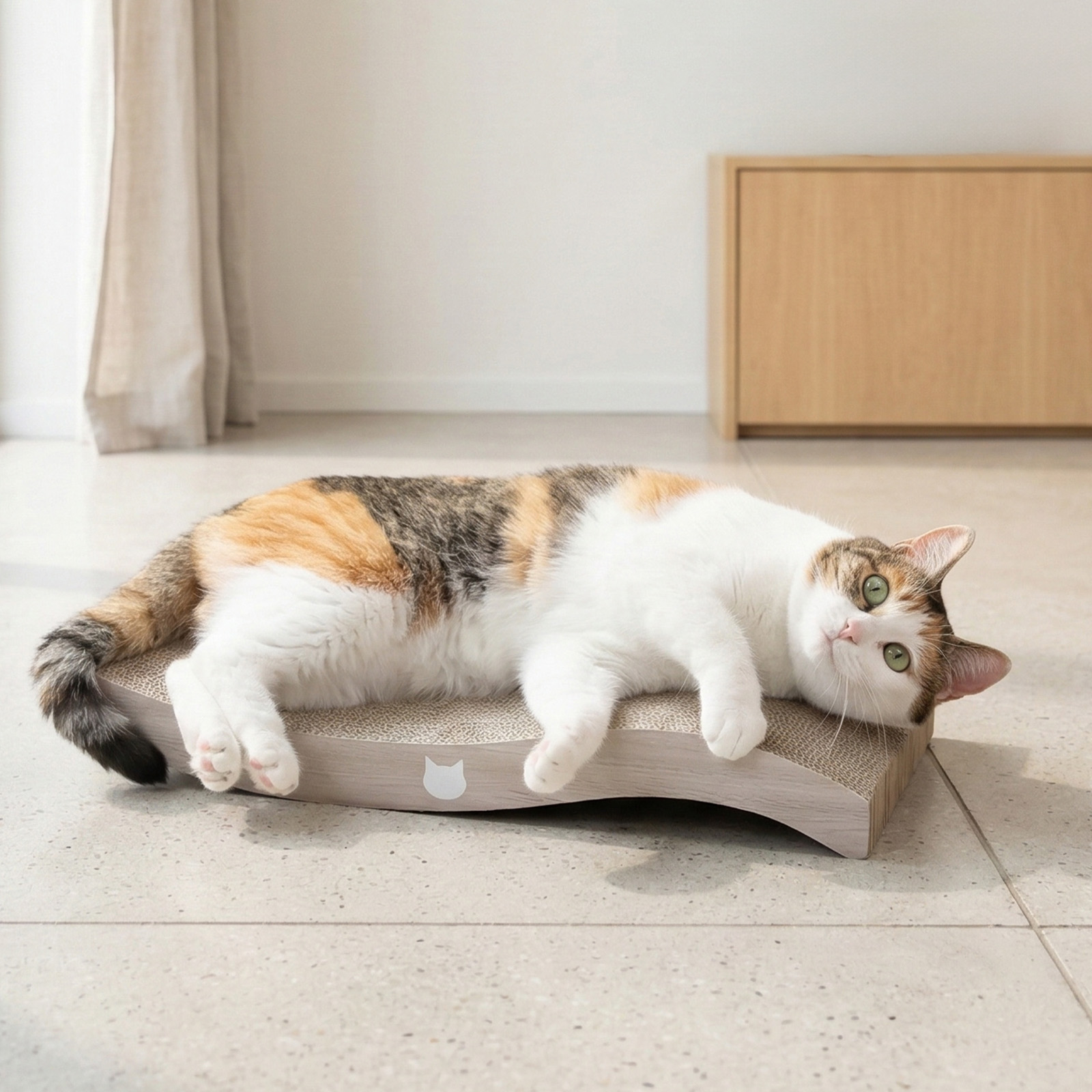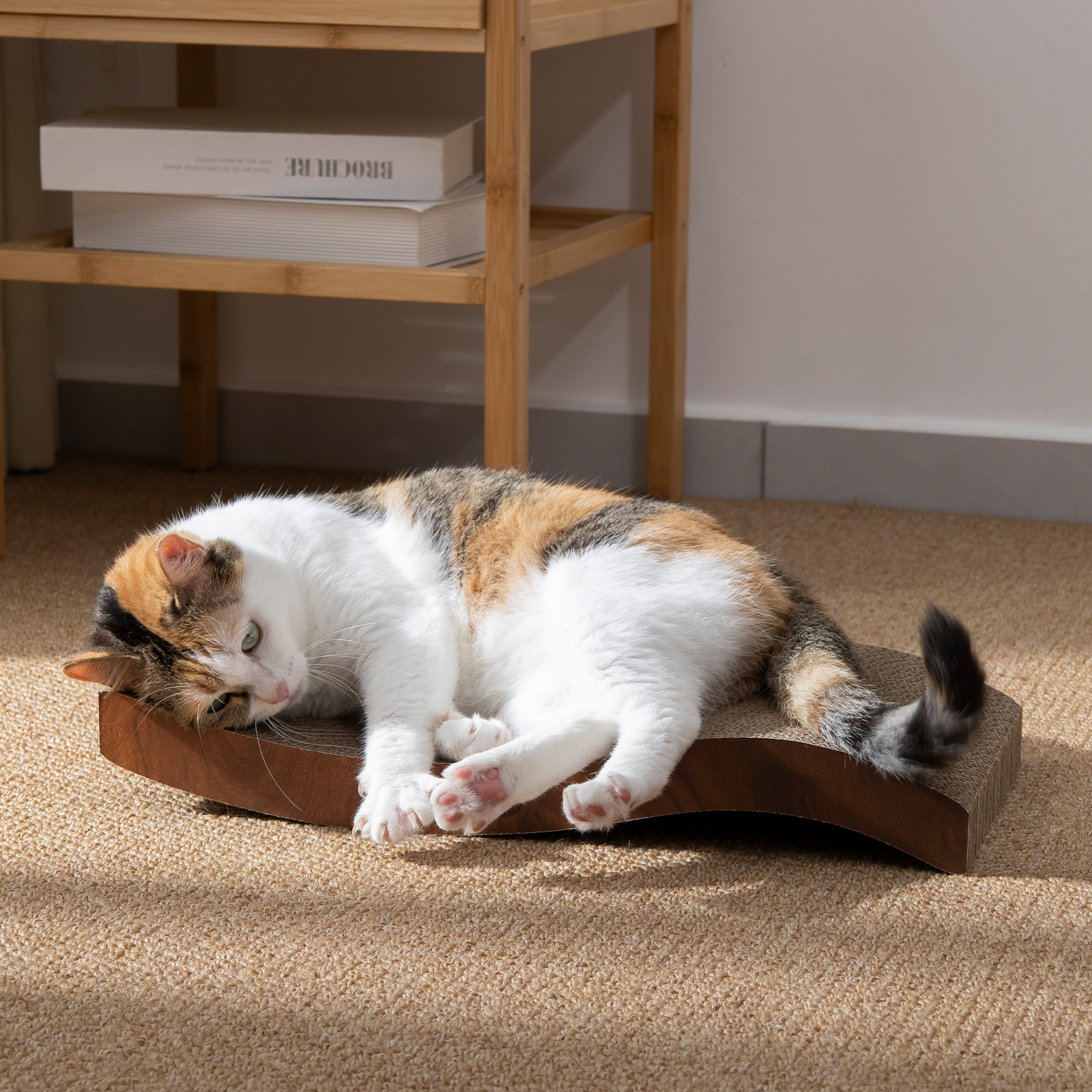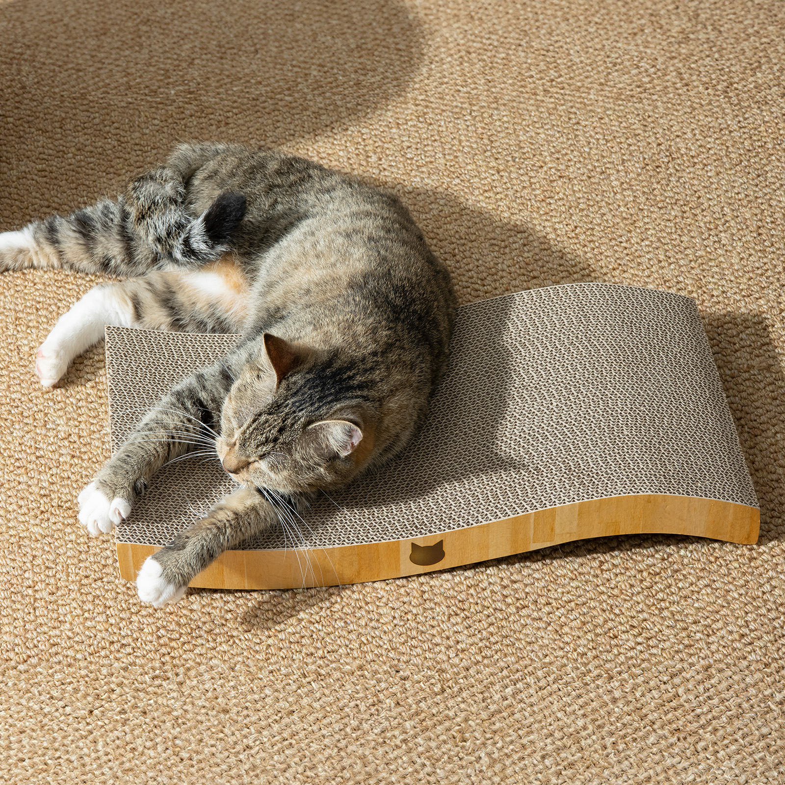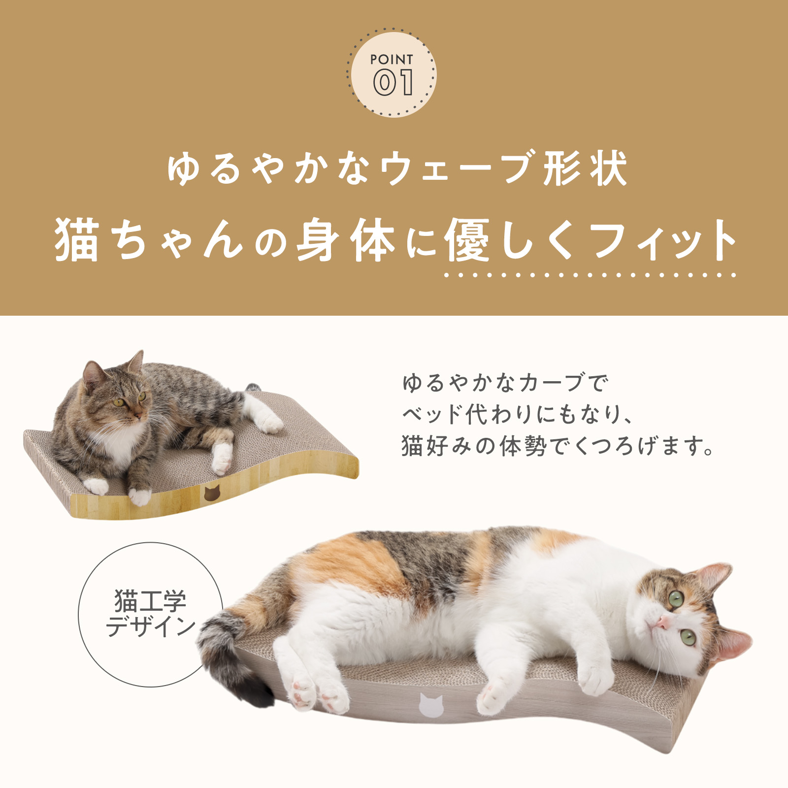 ゆるやかなウェーブが体にフィット。といでよし寝てよしの爪とぎパッド。