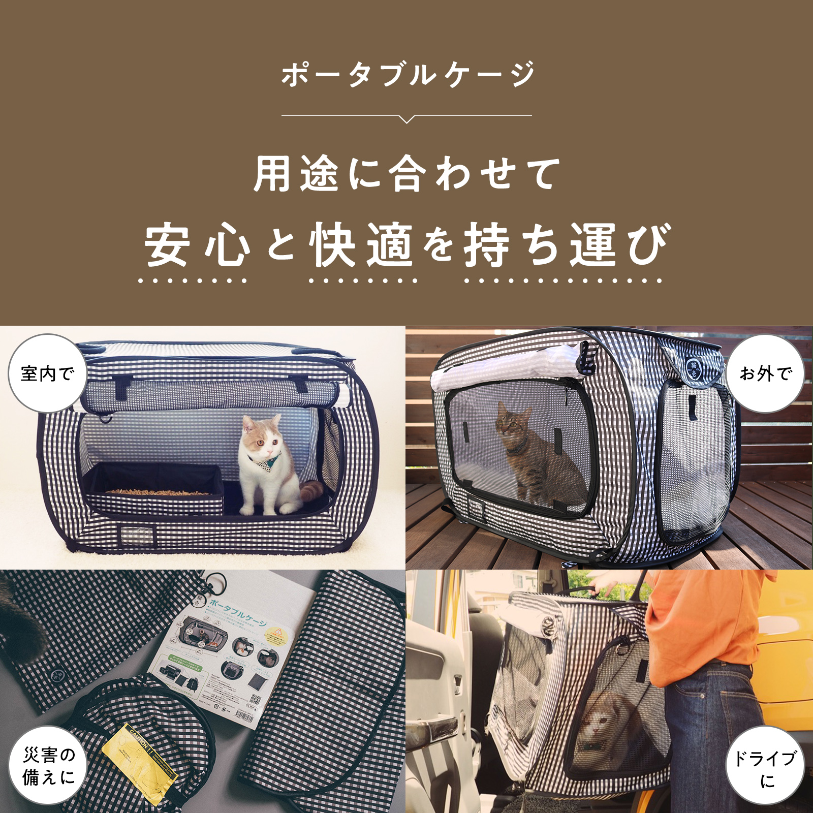 極めつけは、災害時や帰省時に必須の「ポータブルケージ&トイレ」。
