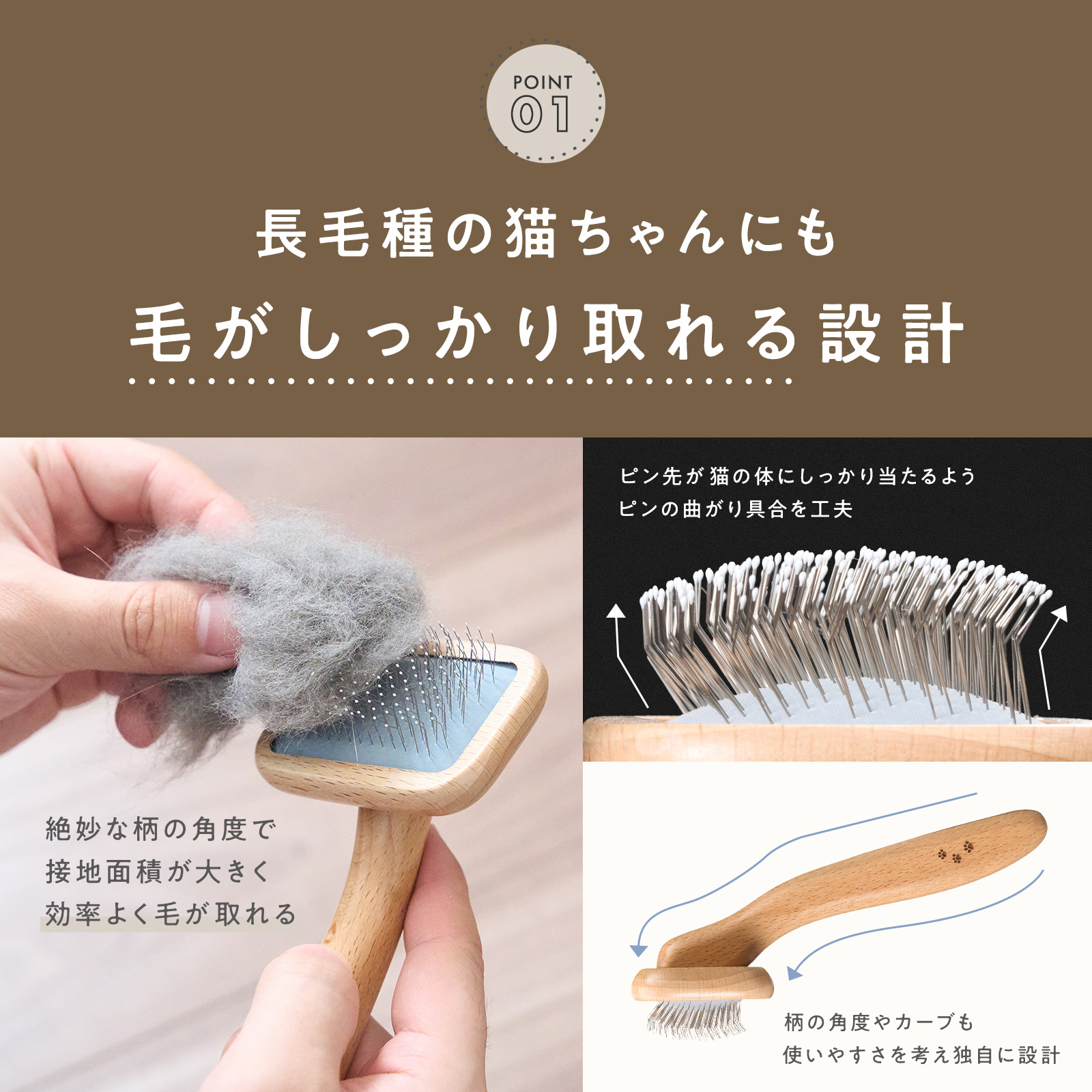 ・猫用 スリッカーブラシ 天然木